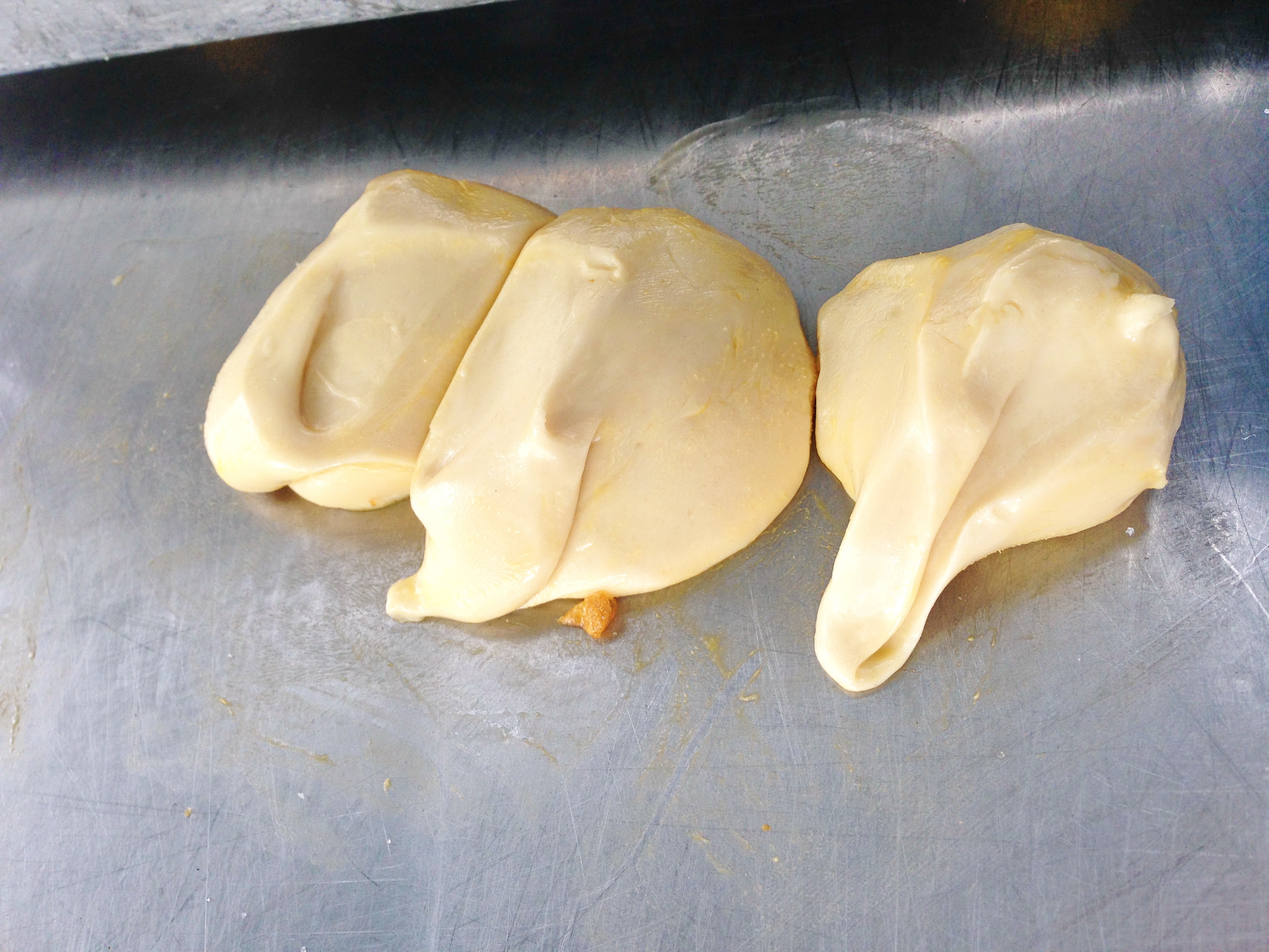 ก้อนแป้งโรตีที่นวดมาแล้ว (จะถูกป้ายด้วยเนยไว้) เพิ่มความหอมเวลาทอด
