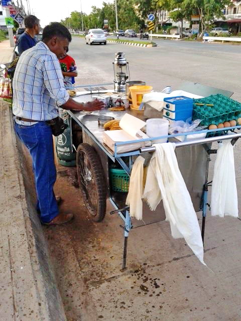 รถเข็นที่ใช้ก็สะอาดสะอ้าน แกเช็ดตลอดทุกครั้งที่ทำโรตีแต่ละรอบเสร็จ